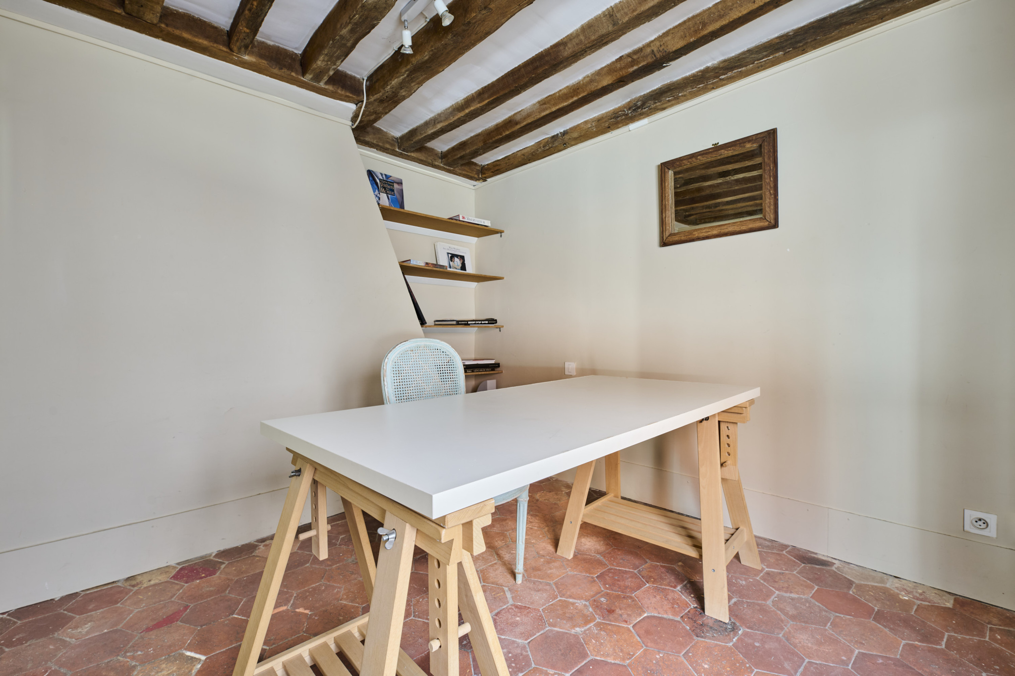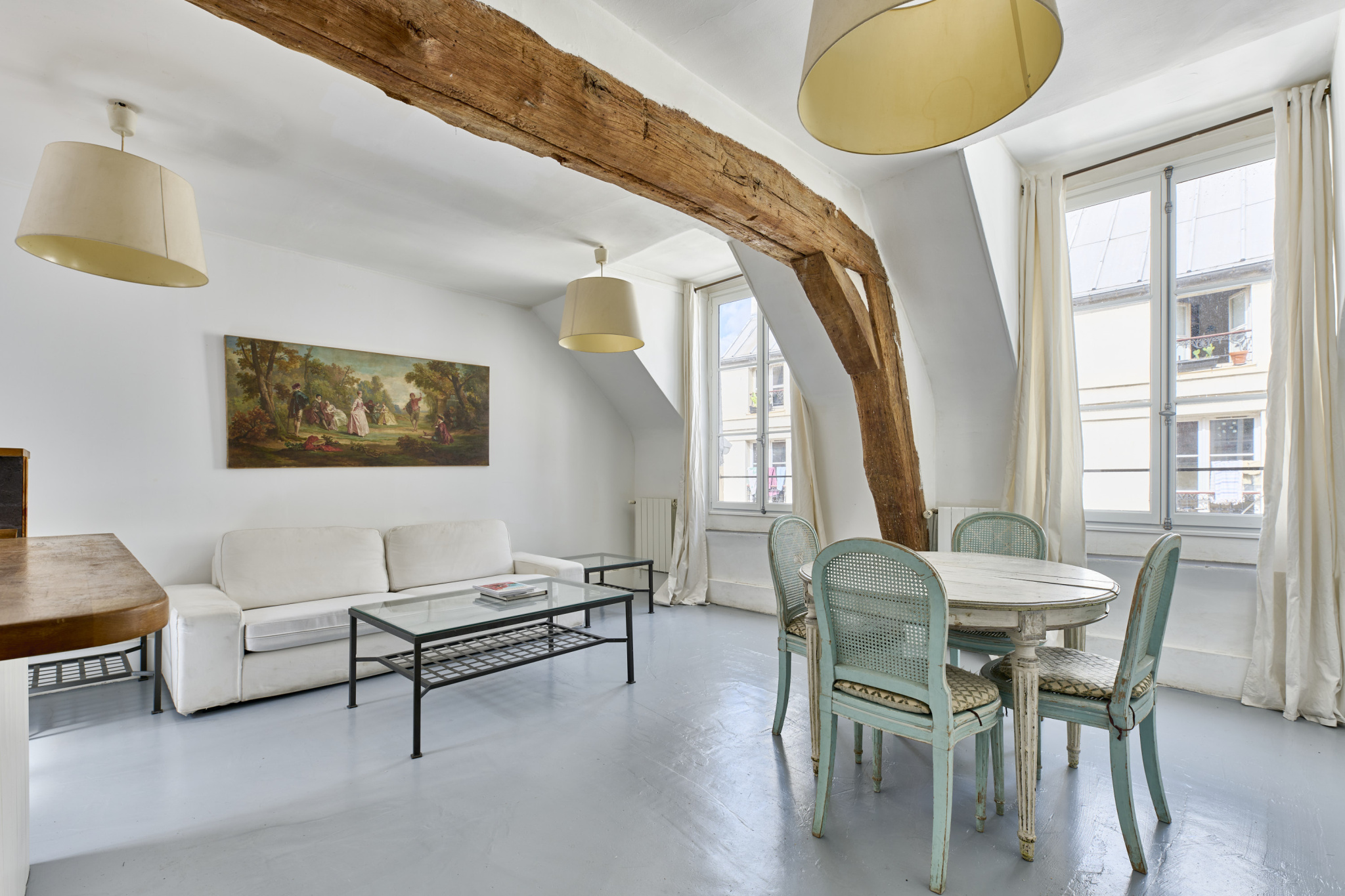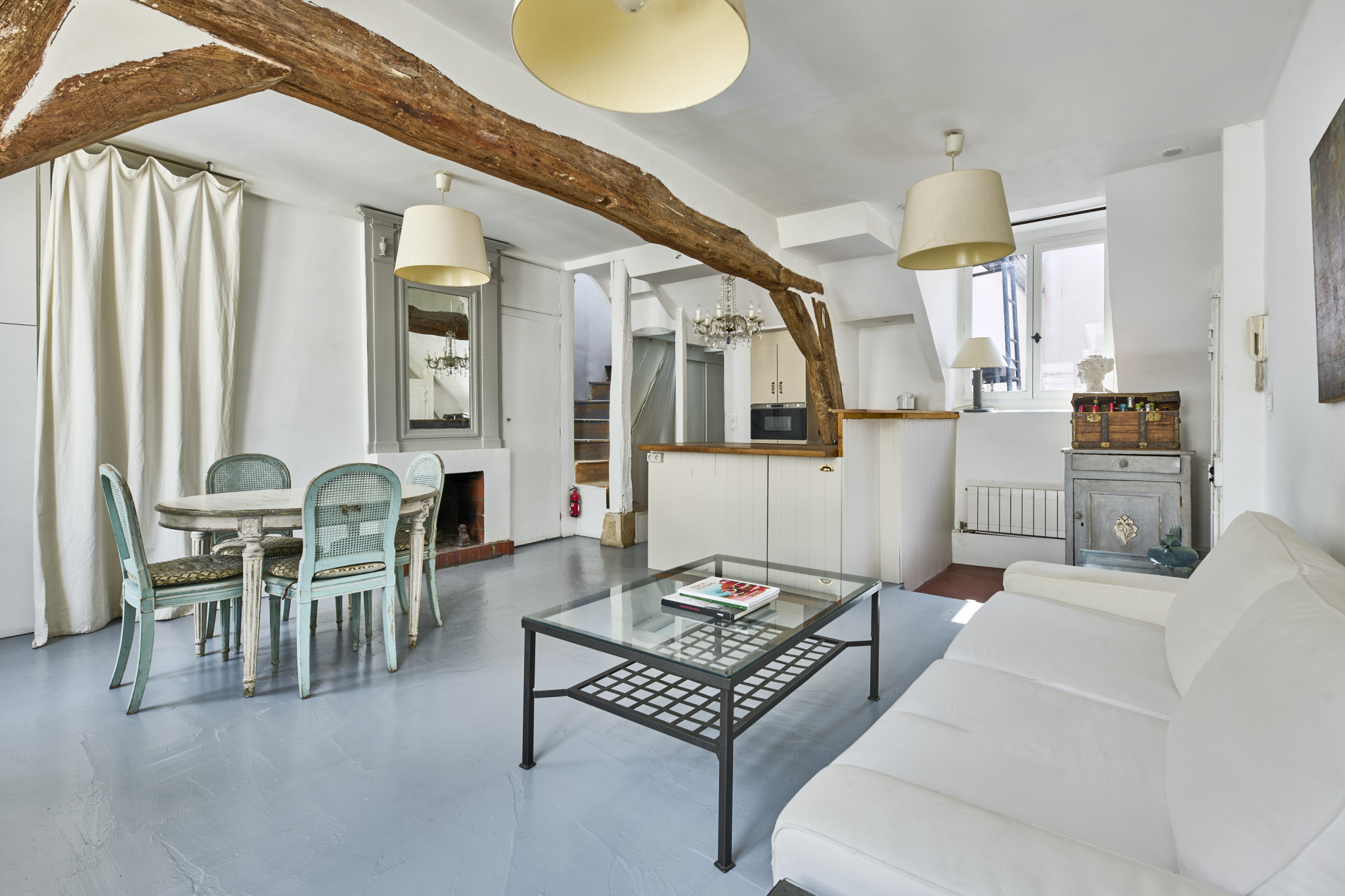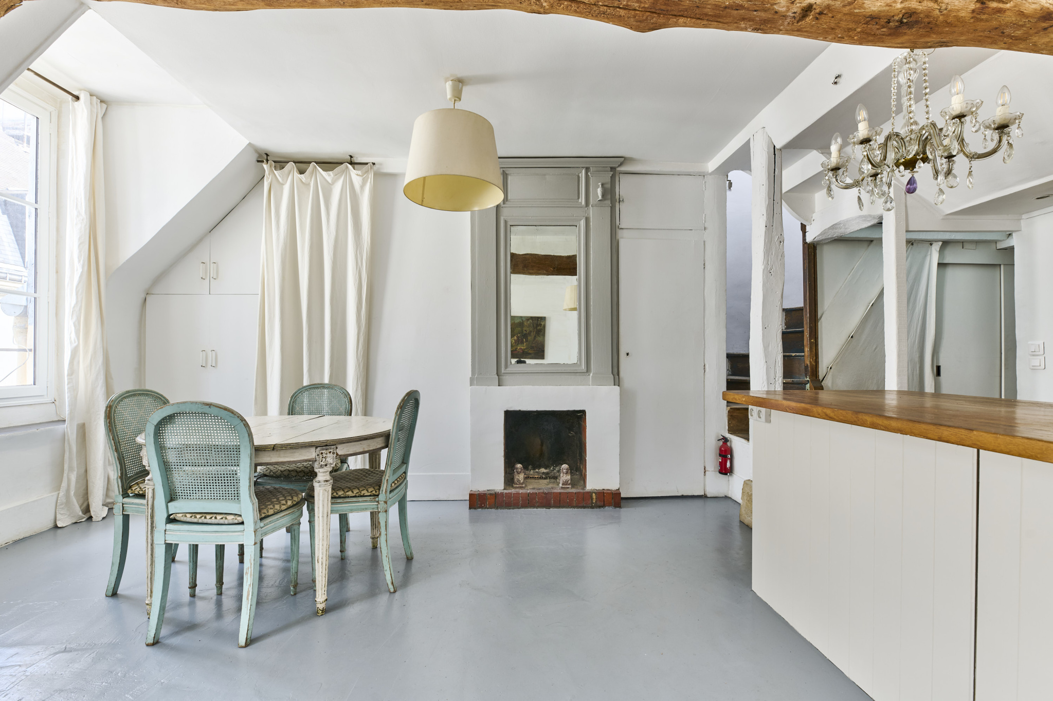 Grâce à sa triple exposition, ce bien sous les toits bénéficie d'une luminosité constante et d'un calme absolu, tout en étant au centre d'un quartier historique animé.