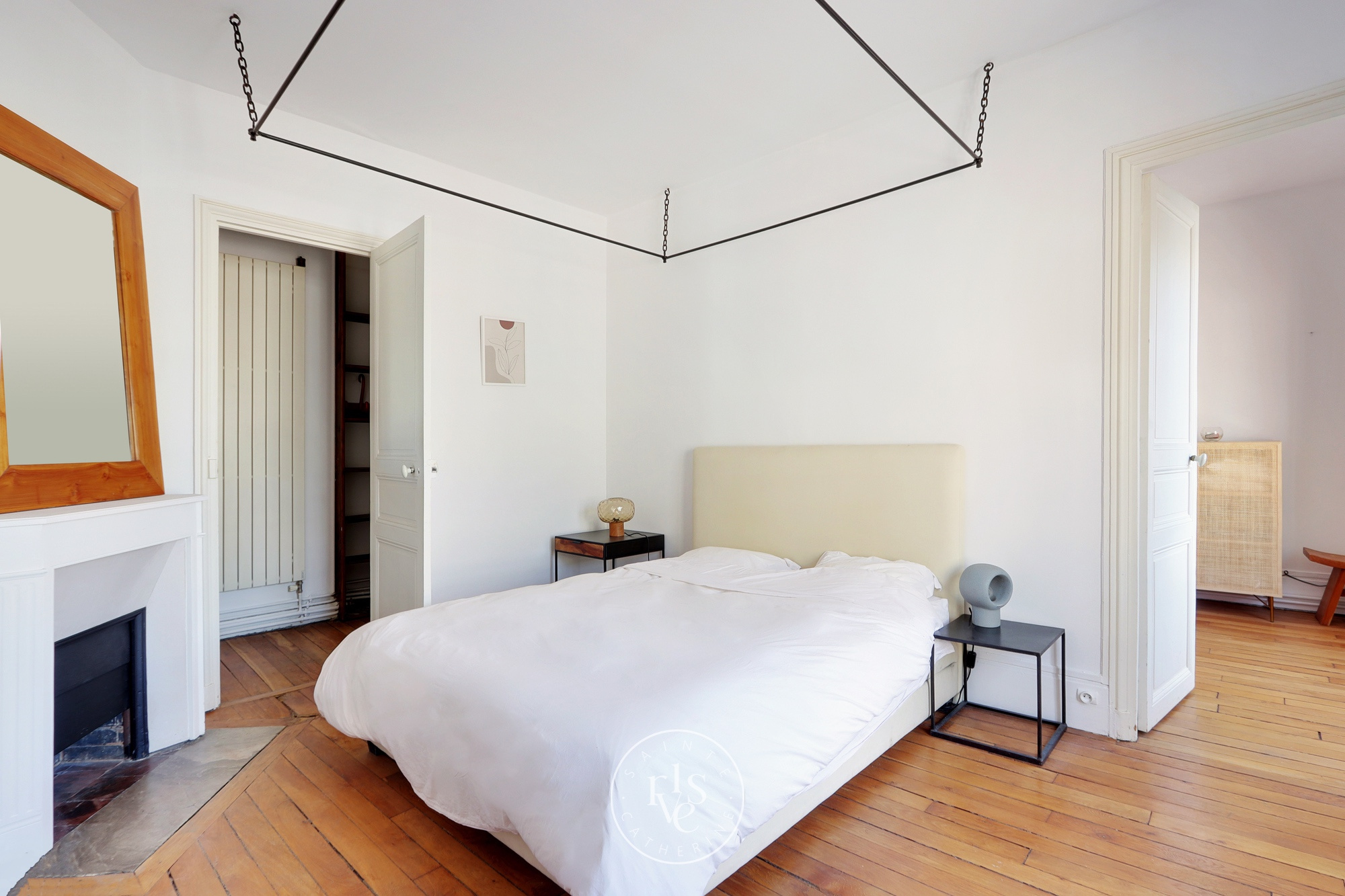 Place des Vosges - Luxury apartment located on the 3rd and last floor of a beautiful Hotel Particulier on the courtyard offering entrance, separate fitted kitchen, living room, dining room, two bedrooms, a bathroom with toilet, a dressing room. Exposed East-West, crossing and bathed in light, this apartment combines both modernity and the charm of the old, an unobstructed view of the sky and the courtyard of the Hotel, with a striking calm, not overlooked.