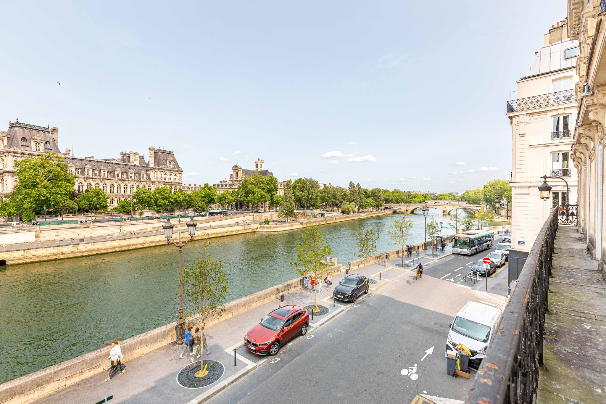 Rives Sainte Catherine presents an exceptionally charming apartment on the second floor of a luxury Haussmannian building with an elevator. Located on the prestigious Quai aux Fleurs, this property features a welcoming entrance hall, a spacious living room, a spacious dining room, an elegant bedroom, a separate fitted and equipped kitchen, a child's bedroom or office, a bathroom, and a separate toilet.