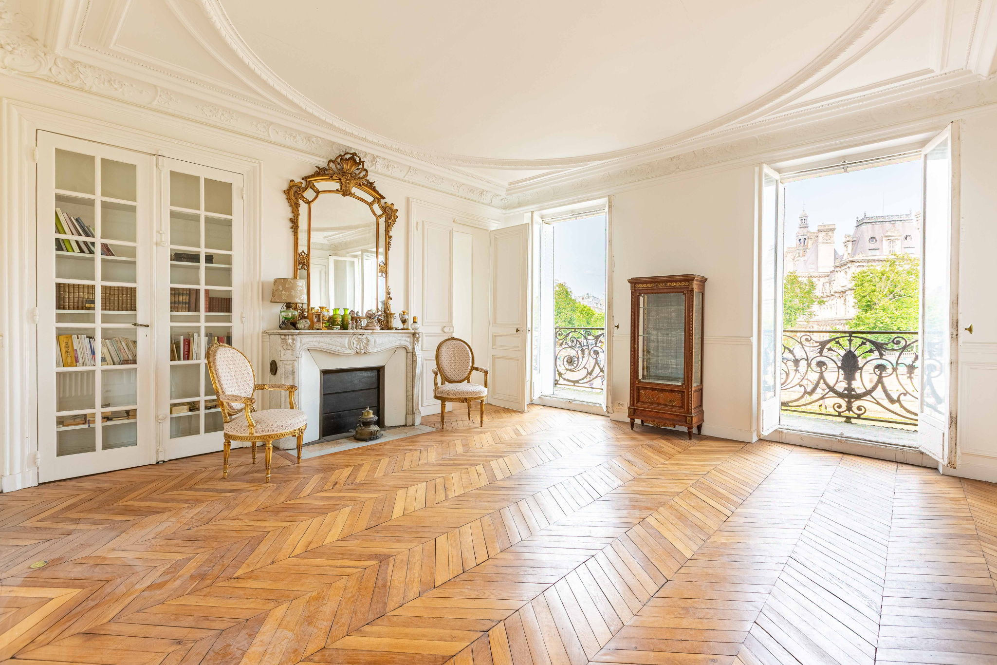 A balcony leads off the living areas and bedroom, offering breathtaking views of the Seine and the Parisian skyline, unobstructed and bathed in natural light. A large cellar completes this exceptional property.