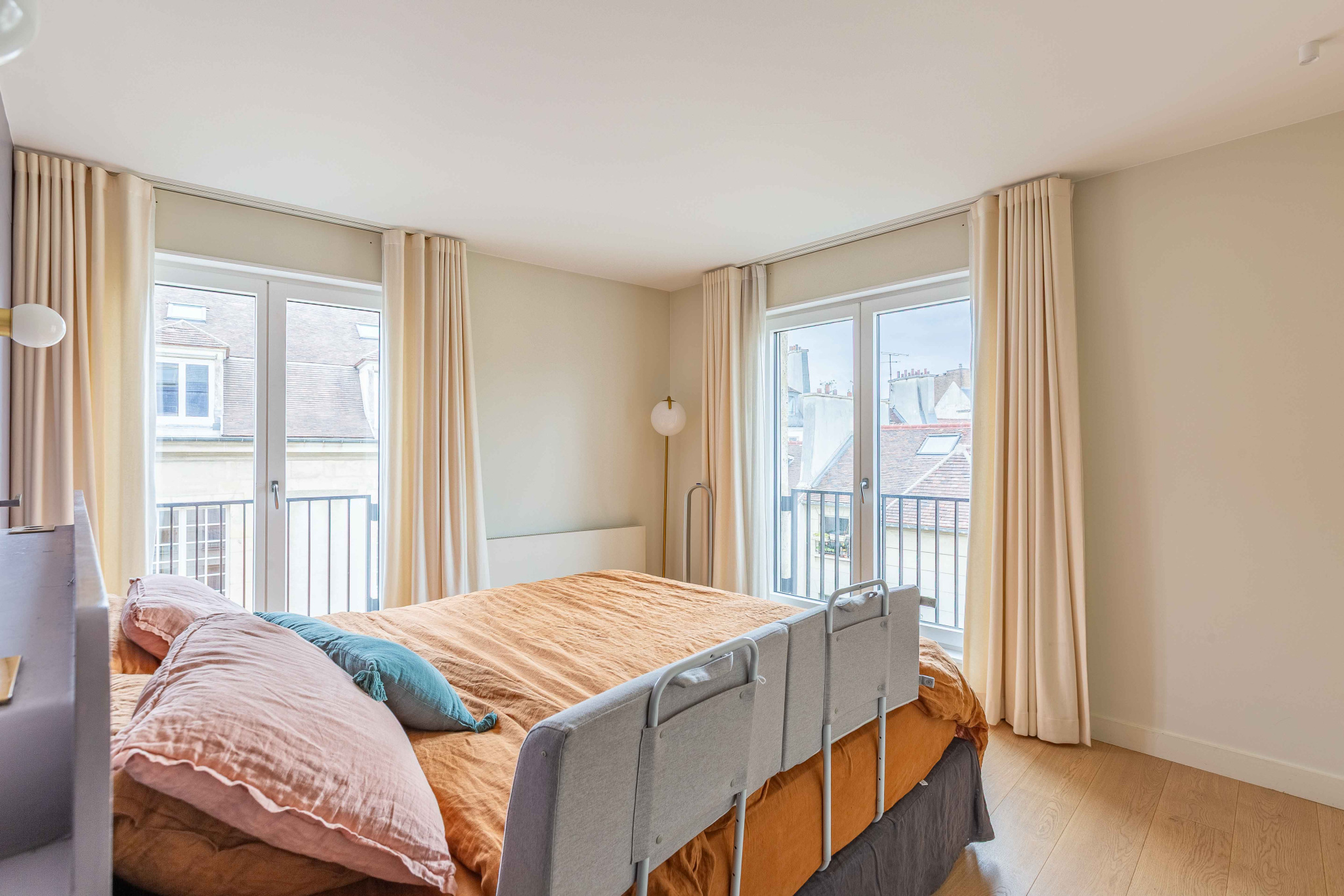 Au coeur du Marais, entre rues pavées et adresses confidentielles, à deux pas du musée Picasso, l'appartement conjugue espace, silence et lumière. L'immeuble est ravalé.