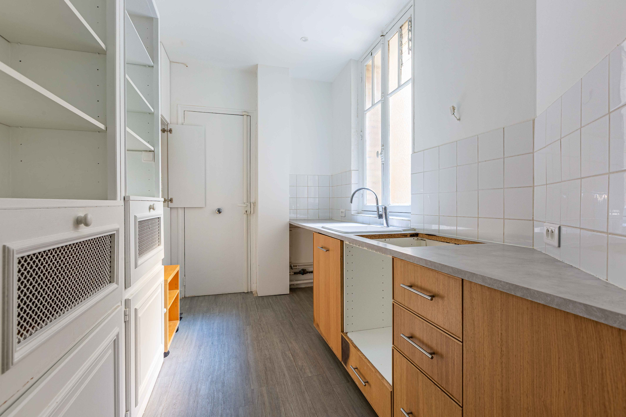 L'appartement est traversant sur deux cours et bénéficie d'une belle hauteur sous plafond de 3 mètres, offrant de beaux volumes et un agencement modulable.