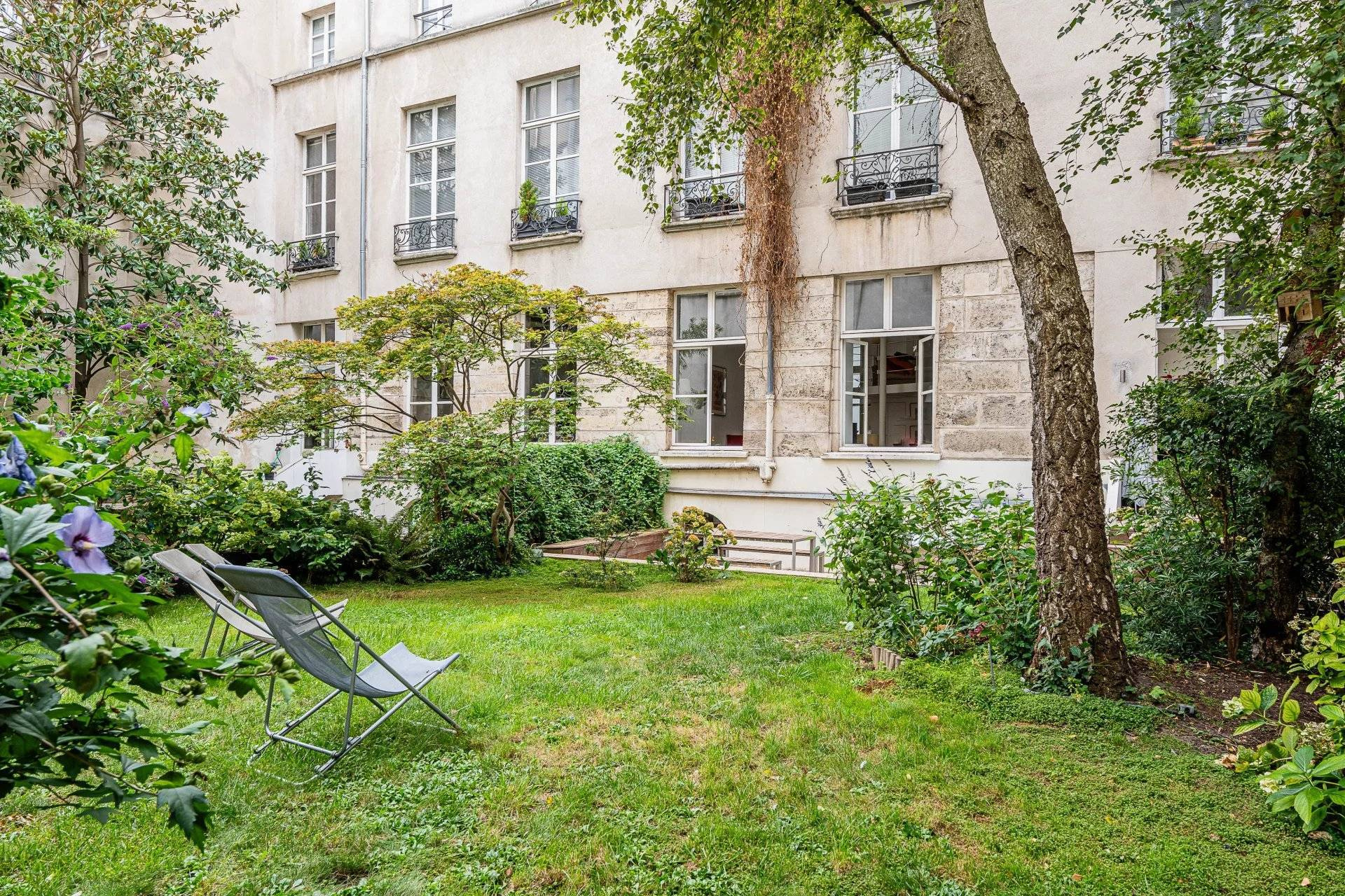 Au coeur du Marais, à l'abri des regards, au détour d'une charmante cour arborée du 17ème siècle, unique appartement au calme absolu, offrant un accès de plein pieds à un grand jardin privatif arboré de 151m2 et sa terrasse aménagée avec jacuzzi. Comme une maison sur trois niveaux, il est composé en rez de jardin d'une grand réception baignée de lumière avec une belle hauteur sous plafond de 4,50M, une cuisine séparée dînatoire, un cellier/buanderie et des toilettes invités. Au premier niveau, un espace bureau/ bibliothèque, une chambre donnant sur jardin, une salle de douche, toilettes séparés et une dressing. En cours anglaise, une masterbedroom avec salle de bains et douche, dressing, toilettes séparés.Jouissance privative d'un jardin au calme, lumineux. Appartement avec du cachet et ses espaces extérieurs exclusifs au coeur du Marais.