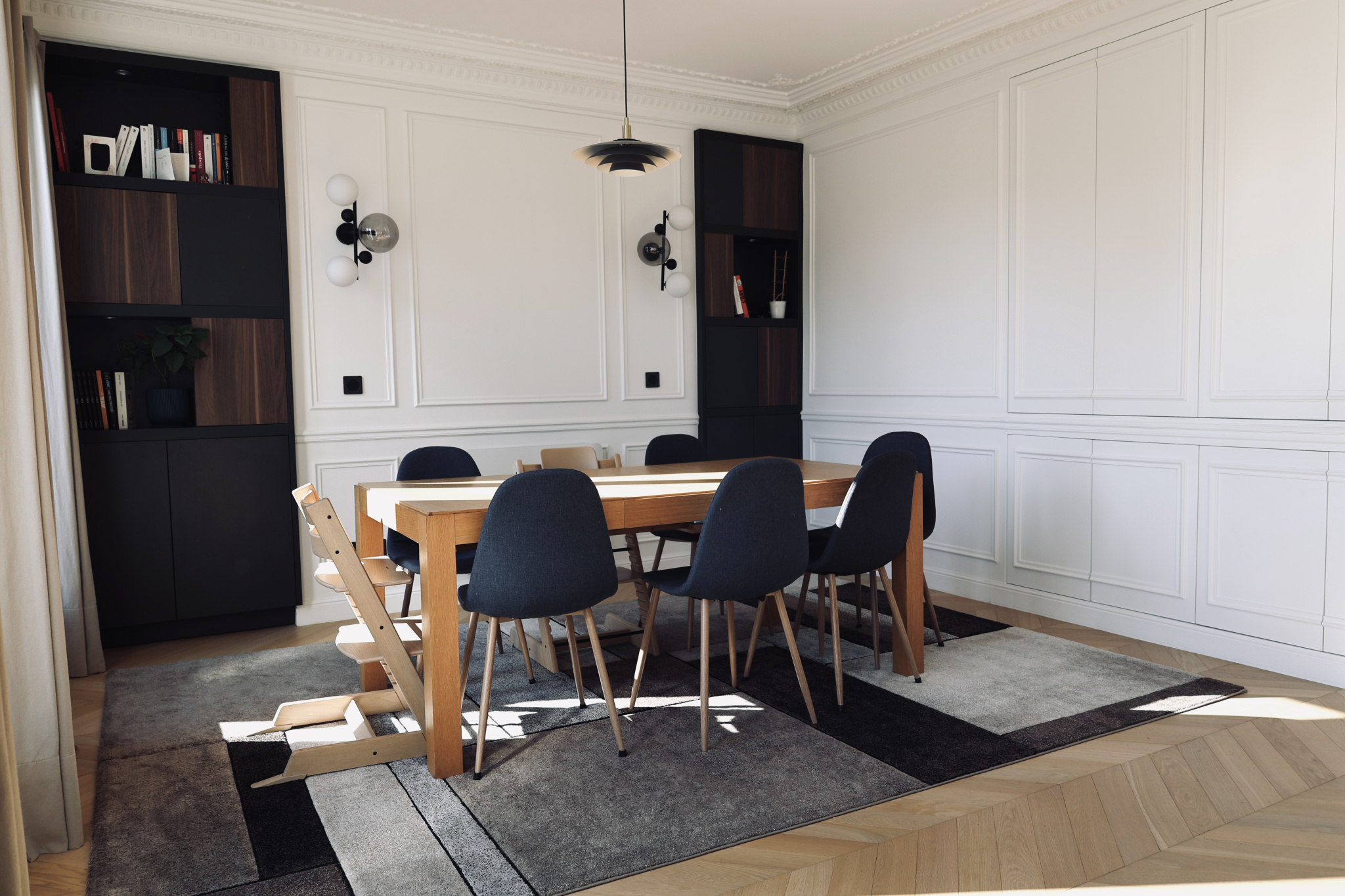Dès l'entrée, vous serez accueilli par un hall lumineux qui mène à une cuisine moderne et raffinée. Le vaste double séjour, orné de splendides moulures et d'une cheminée entièrement restaurée, s'ouvre également sur cette terrasse baignée de lumière.
